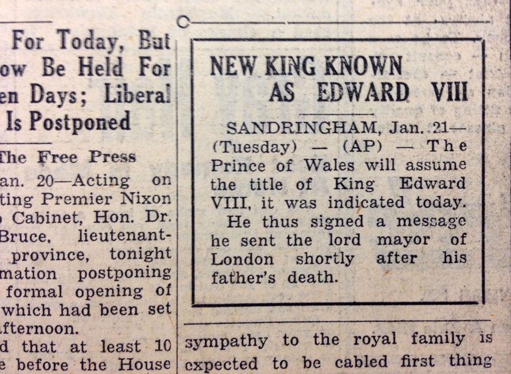His Majesty King George V is Dead